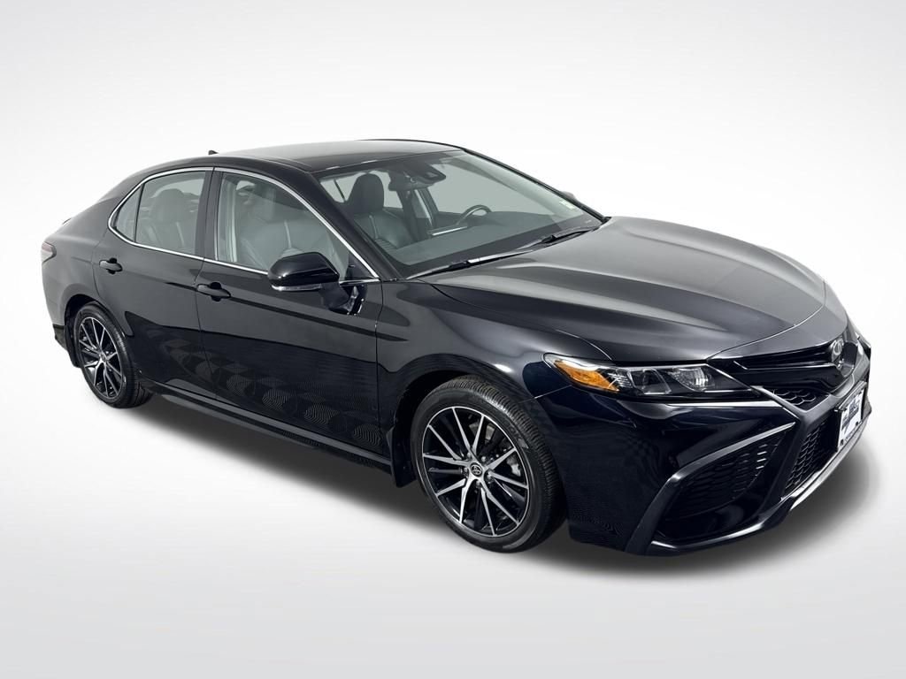 CARFAX One-Owner. Certified. Midnight Black Metallic 2023 Toyota Camry SE FWD 8-Speed Automatic 2.5L I4 DOHC 16V Black Artificial Leather, ABS brakes, Active Cruise Control, Alloy wheels, Electronic Stability Control, Front dual zone A/C, Heated door mirrors, Illuminated entry, Low tire pressure warning, Remote keyless entry, Traction control.